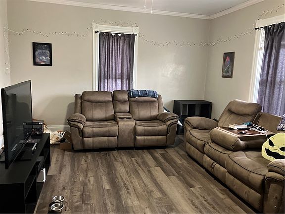 This is a Great Move-In Ready Home! This Two Bedroon 1.5 Bath Home has very spacious room sizes with Newer Hot Water Tank, Furnace, Roof, and Flooring. Drop Your things in the Mudroom and enjoy the Quaint Kitchen with space for a dishwasher, if desired. The Large Dining Room is perfect for family gatherings and the Large Living Room has French Doors that lead to the hall and upstairs. The Master Bedroom has Two Closets- One a Large Walk-in and the other is nice size as well. Basement has Glass Block Windows and Bilco Doors for Access. Front Porch is spacious and the perfect place to unwind and enjoy the seasons! There are 2 Off-Street Parking Spots Behind the Home off the Alley. Small Yard to enjoy or do some gardening. Don't Wait!