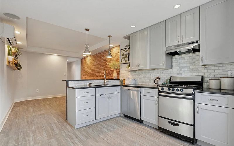 Move right into this charming 2-bedroom, 1-bath second-floor unit in the heart of Passyunk Square. Featuring an open living and kitchen area with quartz countertops, a custom backsplash, and a cozy breakfast nook, this home blends modern updates with classic character. Enjoy exposed brick accents, custom shelving, and a vintage black-and-white tiled bath. Both bedrooms offer ample closet space. Additional conveniences include an in-unit washer and dryer, plus shared basement storage. Perfectly located just steps from Passyunk's shops, restaurants, and cafes!