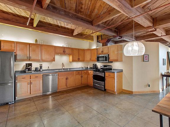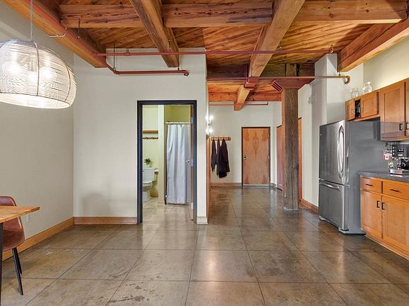 Experience refined city living in this sophisticated Cream City brick loft just steps from Brady St. This sunlit SW-facing corner unit has terrazzo floors, soaring exposed beams, 2 bedrooms, 2 full baths, dedicated office, and coveted cream city brick. The spacious kitchen offers ample counter space, room for an island and a walk-in pantry for all your Gloriosa runs! Enjoy every comfort: in-unit laundry, storage unit, in floor radiant heat (included in HOA), central vac, heated towel bar, sleeve AC, and 2 heated underground parking spaces. With new windows, handicap accessibility, and a pet-friendly community, this warrantable condo blends historic charm with modern luxury--walkable to the lake, river, and the city's finest dining and nightlife.