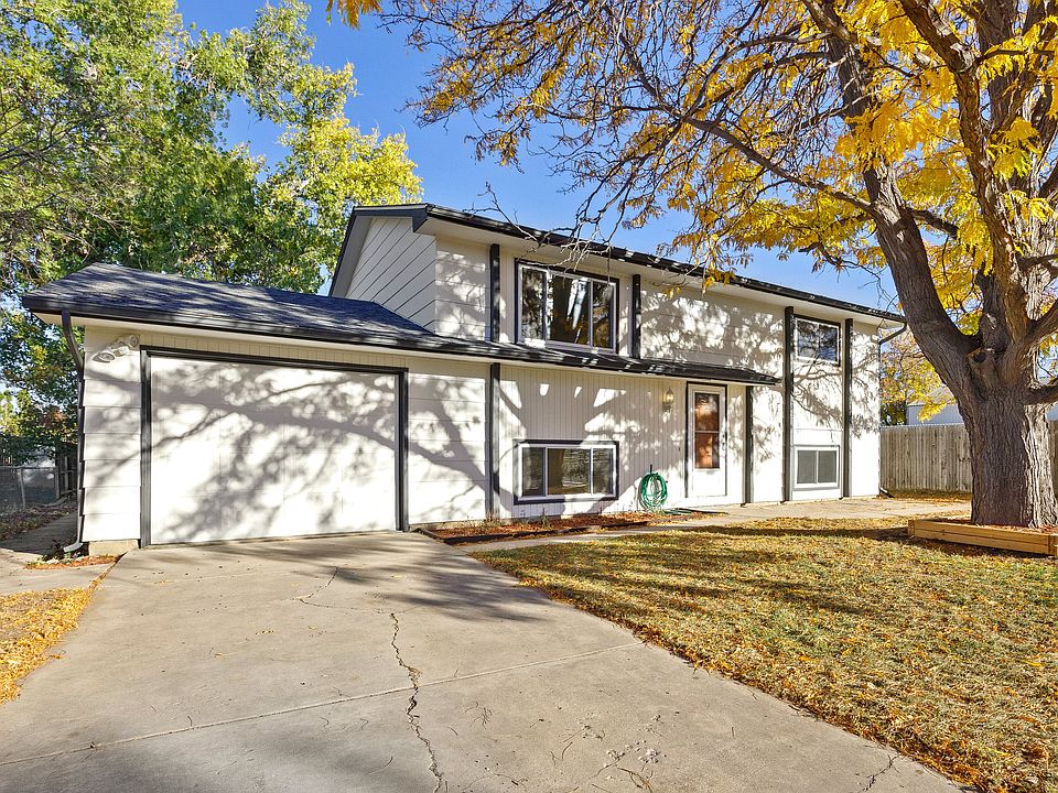 You'll enjoy returning home at the end of a busy day to this bright, charming bi-level positioned on a large lot at the end of a quiet street. Horses graze in a peaceful adjacent pasture; you can see the mountains behind them. This home has been freshly painted inside and out for its new owner(s). All new carpet and stylish laminate flooring in both bathrooms. On the upper level, a spacious living room is flooded with sunlight through large windows. The kitchen features an abundance of cabinet and countertop space and is open and receiving to the living room. Access the rear deck directly through the kitchen for outdoor entertaining. 2 spacious bedrooms and a full bath complete the upper level. The lower level offers a generously sized family room, 3/4 bathroom with a laundry area and new shower. 2 bedrooms receive ample light through garden level windows. All windows updated. Gutters, windows and landscaping cleaned and cleared for listing. This is a great home to owner occupy but also offers excellent rental potential. No HOA, close to CSU, Shopping and entertainment, Rogers Park, Fort Collins City Park, Old Towne, Foothills and trails.