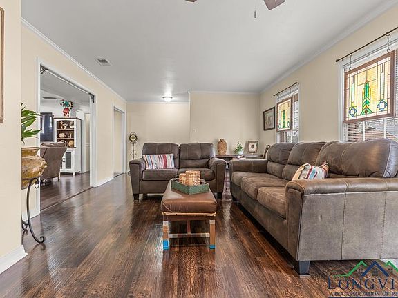 Charming 3-Bed, 2-Bath Home in Established Longview ISD Neighborhood! This beautifully updated 3-bedroom, 2-bathroom home with a 2-car garage is located in a well-established neighborhood within the highly desirable Longview ISD. Recently updated with fresh paint, new fixtures, and stylish vinyl plank flooring, this home offers modern comfort while maintaining its charm. The spacious layout includes two large living areas, perfect for family gatherings or entertaining. A cozy wood-burning fireplace with a gas starter adds warmth and character to the main living space. Step outside to the large back patio, ideal for relaxing or hosting outdoor events in the expansive fenced backyard. An 8' x 16' storage building, added in 2023, provides extra storage space for tools, lawn equipment, or recreational items. With its thoughtful updates, excellent location, and generous living spaces, this home is ready to move in and enjoy. Don’t miss the opportunity to make this lovely property yours!