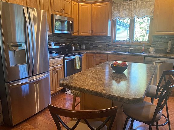 Nestled in a serene, wooded setting, this beautifully maintained 1.5 story home sits on a spacious .36 acre lot and offers comfort, modern updates and peaceful views. With 3 bedrooms and 2 baths, this home is a perfect retreat for those looking to relax and enjoy nature. The updated kitchen is well-appointed with all appliances included. The first floor boasts hardwood floors and a convenient laundry room. The spacious primary bedroom, located on the main level, features a large walk-in closet and a shared, updated bath. A cozy fireplace in the living room sets the perfect setting for the chilly winter nights. The oversized 2-car functional garage provides plenty of room for a workshop and storage. The outdoor space is a standout, featuring a large deck with an awning, perfect for entertaining or relaxing. The property is located in an area of mature trees and includes berry bushes, a fire pit, and a wooden swing, which will remain for your enjoyment. This home provides a tranquil setting for year-round comfort. Being sold as-is, it's the perfect mixture of modern updates and natures beauty and ready for you to simply move in.
