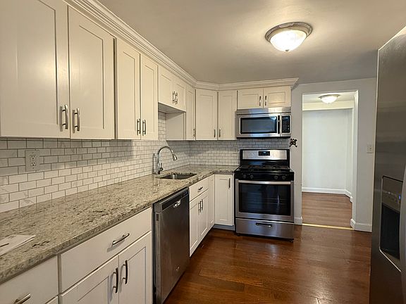 Rare single-family rental in Weymouth! This updated 2-bed home has hardwood floors throughout, a granite kitchen with stainless steel appliances, and a modern tile bathroom. Both bedrooms are large with double closets and pond views. The finished basement adds extra space for an office or gym. Huge driveway fits 4 cars. Big backyard, storage shed, and quiet neighborhood. Close to Route 3, South Shore Hospital, shopping, and dining. $3,300/month available now. Don't miss this one.