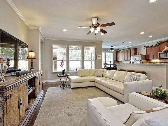 Looking for a Beautiful home,w/a greenbelt view & custom patio...Here it is! A Vernon Hill sits w/in a Cul-de-sac. Gorgeous wood floors dance through the home fm the Foyer to the Great Room & waves out to the kitchen & breakfast nook. Recent Interior paint, the home welcomes you w/Cool, Fresh Brightness. So many up-grades,like; fenced backyard,Crown molding,Ceiling Fans,Stainless Appliances,Gas Range, built-in ironing board in utility/laundry rm, add'l storage built w/in the home. A must have! Roof 2020