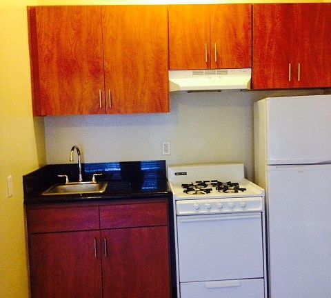 Junior studio with full kitchen and full bathroom, gas stove, fridge, hardwood floors throughout, shared laundry room onsite, street parking only *water, trash, & gas included*