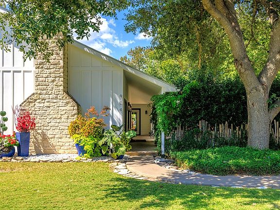 Charming dual-home property is just nine blocks from Fredericksburg's Main St. Take a walk down the full-length deck of the main home and enter the spacious, light and bright great room with dining and living area with floor to ceiling stone, gas log fireplace. The main home was built in 1995 (Appraisal) and offers about 2195 square feet (Appraisal). It features master bedroom with bath and laundry downstairs and two loft bedrooms and shared bath upstairs. The open-concept kitchen is ideal for entertainment, featuring a work-island with breakfast bar, a breakfast area, and seamless flow into the great room's formal dining space. Connected to the main home is a thoughtfully designed secondary home, ideal for a mother-in-law suite, guest house, or overflow accommodation. Built in 2007 (per appraisal) and approximately 1,267 sq ft, this space includes a downstairs master bedroom with walk-in closet and full bath, a utility area, and an open-concept kitchen, living, and dining area. Upstairs you'll find a spacious second bedroom with walk-in closet, private bath, and a unique doorway that connects to one of the main home's loft bedrooms. Both residences have their own courtyards with tight cedar stave fencing for privacy. The secondary home's courtyard is complete with a hot tub and patio, and low maintenance artificial turf. The concrete, tree-lined driveway leads to the double, attached, two-car garage. Property zoning is R-1. Buyers intending to use the secondary home as a short-term rental must verify all requirements with the city. Under current ordinances, STR use would require owner-occupancy.