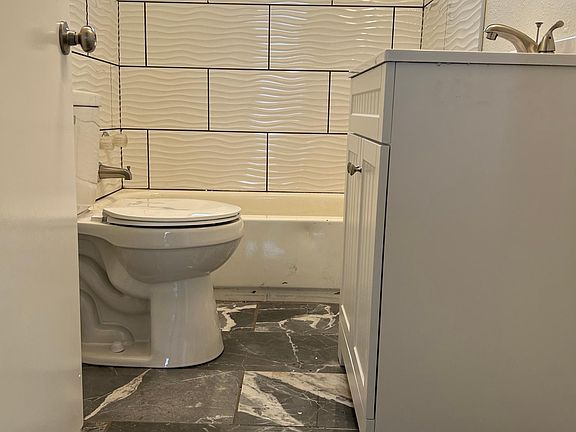 The three bedrooms are roomy and inviting, with new flooring and plenty of closet space for storage. The bathroom has been completely renovated and features a modern vanity and tiled shower.