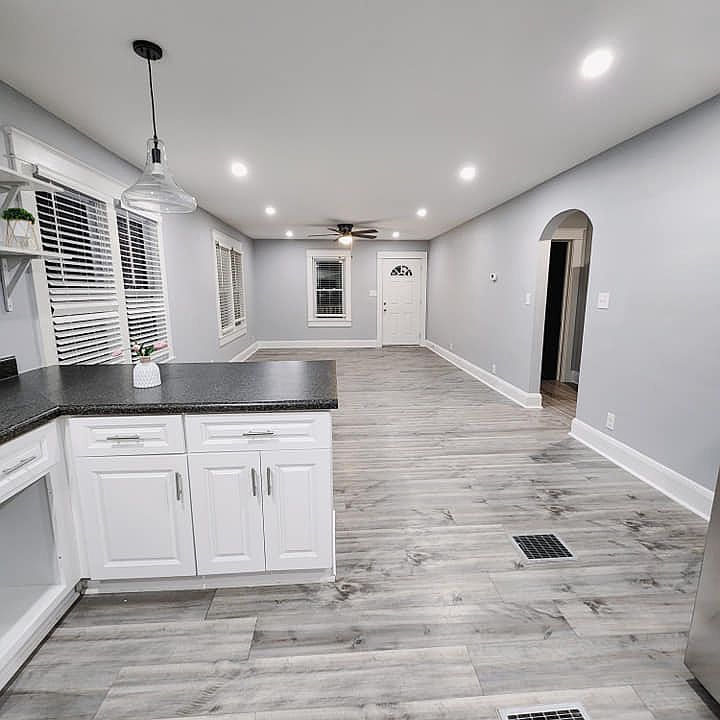 Property has been fully renovated with fresh paint, brand new stainless steel appliances - fridge, dishwasher, microwave, electric range. Updated plumbing, electrical. Home offering incredible natural light with an open floor plan and beautiful design throughout! The living room and kitchen has a control of the brightness of the light bulbs (dimming between cool and warm light). House features laminated wood flooring in living room and kitchen, hardwood floors in the bedrooms, a covered porch and patio. Car garage for one car like also on street parking available. Full basement, new windows a natural gas forced air furnace, mini split for AC. and new electric water heater. Comes with a washer and dryer.