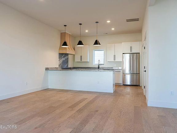 The mixture of materials on the exterior design gives this townhouse a luxurious shine. The natural wooden accents and floor-to-ceiling windows featuring high-end light fixtures invite you into your modern oasis, perfect for entertaining or everyday living. Enjoy an open floor plan with high ceilings and luxury hardwood flooring. The kitchen offers high-end appliances, granite countertops and a custom hood to be painted by the owner based on the buyer's color preference. The second floor features 4 bedrooms and 2 full bathrooms with custom tile, contemporary vanities and gold hardware. Saving the best for last, enjoy your private rooftop terrace overlooking the Tennessee River with views of downtown Knoxville. Don't miss out on this opportunity to live in modern luxury with a prime location just walking distance of Suttree Landing Park, downtown Knoxville, Ijams Nature Center and so much more!