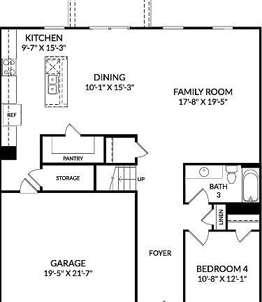 Step into the allure of The Hollins, a residence that epitomizes comfort and elegance. With 4 bedrooms and 3 full bathrooms, this home offers a sanctuary for you and your loved ones to thrive. Experience the seamless flow of the open concept floor plan, designed to enhance your daily living experience. Discover a bedroom on the main level, thoughtfully crafted in lieu of a flex room, complete with a full bathroom for added convenience. Step outside to the inviting covered backyard patio, where relaxation and outdoor gatherings await. Venture upstairs to find the primary suite, a haven of tranquility boasting an ensuite bathroom with a garden tub, perfect for unwinding after a long day. Embrace the harmonious blend of functionality and sophistication at The Hollins, where every detail is meticulously curated to elevate your lifestyle. Welcome home with Stanley Martin Homes. Photos used are for illustrative purposes only. Colors and finishes may vary.