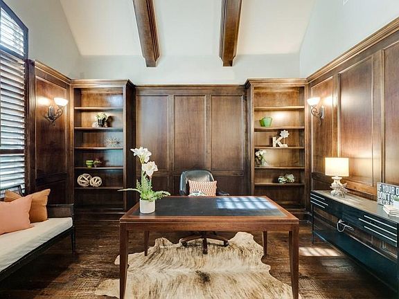 Former Huntington Sanders Model home situated on an oversized cul-de-sac lot! Extensive crown mouldings, beautiful handscraped hardwoods, plantation shutters and a gourmet chefs kitchen set this home apart. 6 burner Wolf cooktop, builtin fridge, dual ovens and plenty of storage space. Sought after floor plan with owner's retreat and guest suite down. Entertain upstairs in the spacious gameroom with full wet bar or the large theater room. When its time for homework, two builtin desks with storage and cubbies are situated outside the gameroom. Storage galore! Floored attic space above 2 car garage w an electric Versa Attic Lift! Enjoy your backyard oasis with extended patio, equipped outdoor kitchen including a Turbo Elite grill, and retractable patio screens so you can enjoy the Texas Summers. StarCreek offers fabulous location and amenities. Two community pools, tennis, clubhouse, and many community events just to name a few. Don't let this one get away!