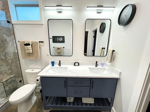 Immerse yourself in the experience of Nashville living in this stunning 1-bedroom, 1.5-bathroom ground-floor apartment. With convenient private entry directly from the rear, this unit is furnished with everything you'd need for a short or long-term stay - boasting a king bed, sleeper futon couch, a dedicated desk and chair, blackout curtains, controllable HVAC, dual-vanity master bath suite with rainfall walk-in shower, walk-in closet with full washer/dryer, kitchen area with appliances and cookware, cozy sleeper sofa couch, smart TVs in both rooms and a convenient half bath, free high-speed internet, and smart lock for easy access.
