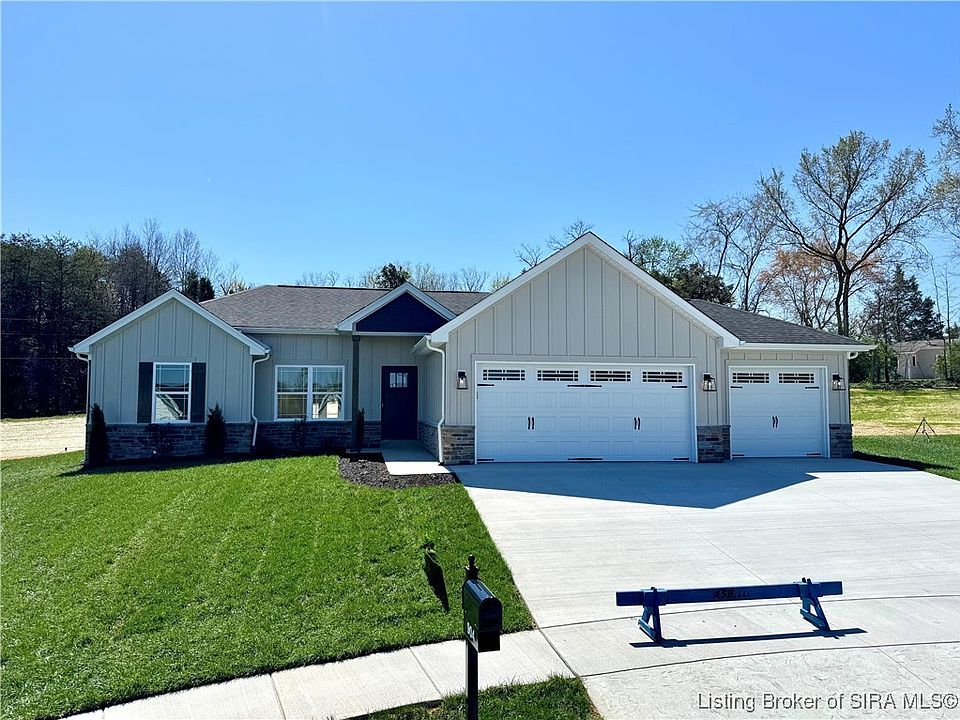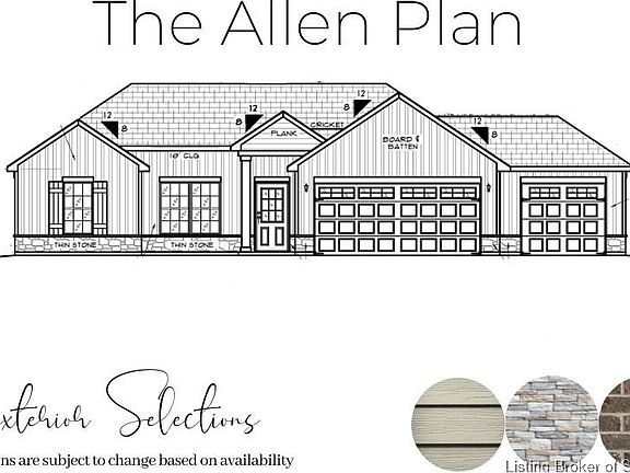 Welcome to Kingsland Fields! Featuring The "Allen" Plan QUALITY built by ASB! Not only does this one have an awesome culdesac, but it offers an incredible curb appeal and 3 CAR GARAGE! This is a WIDE OPEN floor plan perfect for every occasion and offers 10 ft smooth ceilings, recessed lighting, LVP "life proof" flooring, dining area, and gorgeous kitchen with breakfast bar, quartz or granite counters, corner pantry and sleek cabinetry. All bedrooms are a great size including the owners suite for which offers 2 Walk in closets, separated double vanity with granite or quartz and a stunning CUSTOM TILE shower! This home is ENERGY SMART RATED and RWC Structural WARRANTY provided at closing. Kingsland Fields is only minutes to I65 and approx 10 minutes to Louisville!
