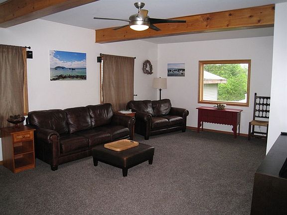 This stunning 4BR, 3BA home is right across the street from the Ely Golf Course. Hilltop location offers gorgeous sunset views. Home has recently been completely remodeled and updated and is a real showplace! Main floor features include a large living room with beamed ceiling, master bedroom, large bathroom with jacuzzi tub, a dream kitchen with 2 sinks, state of the art cabinetry and appliances, and gorgeous counter space. Formal dining room accommodates a large family. Upstairs are 2 large bedrooms and full bath. The fully furnished lower level has a 4th bedroom (or office), den, laundry room, half bath and a spacious family room featuring a home theater. There is central air conditioning throughout the 2,700 square feet of finished space! This maintenance free exterior home has a giant 48' x 12' deck on the back that provides great views into your own private +/-2 acre wooded valley! Nice backyard is partially fenced. 2 stall detached garage.