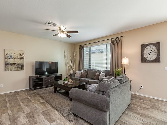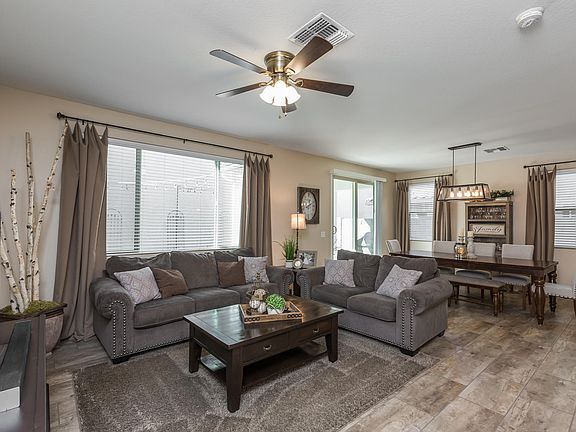 You'll love this beautiful & highly upgraded one-owner home with 3 bedrooms & 2.5 baths in 1934 SqFt. Great room floor plan with loft, laundry & bedrooms upstairs. The kitchen features white cabinets, granite counters, backsplash, stainless appliances, pantry, & island with breakfast bar & pendant lighting. Sliding doors lead out from the dining area to the covered patio, extended paver patio & nicely landscaped yard w/artificial turf & planter beds. The master bedroom has a deluxe bath with dual sink vanity, separate tub & shower & walk-in closet. Other features include a 2 car garage with service door, upgraded stair rail, under-stair storage, main floor powder room, wood-look tile & upgraded carpeting, upgraded lighting fixtures & much more! Community pool & spa, too! See today!