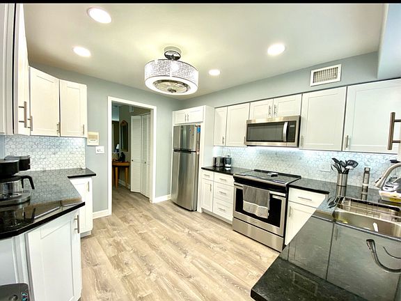 Beautifully updated first-floor 2-bedroom unit with a modern kitchen featuring stainless steel appliances, granite countertops, and a built-in water filtration system. Bright, open layout with luxury vinyl plank flooring throughout and a newly renovated bathroom. Private parking space included, and water covered in rent. Quiet, well-maintained building close to downtown Palatine, Metra, and shopping.