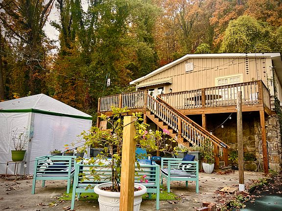 Outside, we have a half-acre front yard with a large wooden deck, as well as a concrete patio outfitted with furniture and a greenhouse tent housing a year-round hot tub.