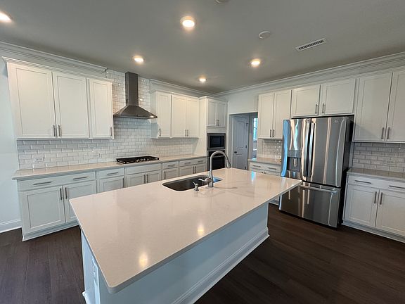 First floor: Open Floor Plan. The home has beautiful LVP flooring, Large living room, Awesome kitchen with quartz countertops, upgraded appliances, Gourmet kitchen, hood that vents outside, lots of cabinet space. The guest BR down is convenient with attached full bath and walk in shower.