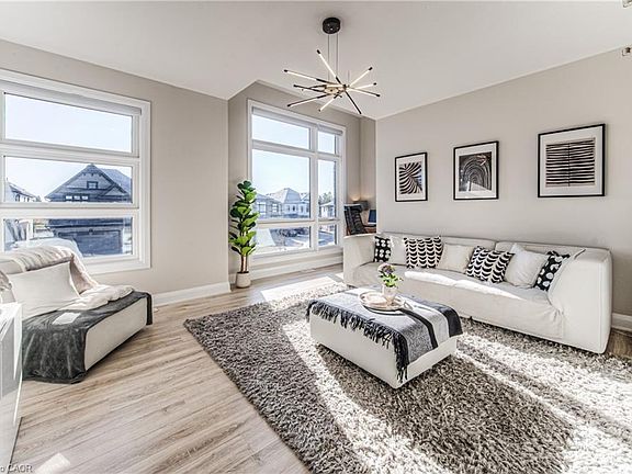 Live on an elite court surrounded by executive homes, with Wetland Way Park as your private backdrop. Set on a premium lot, this modern residence offers nearly 3,900 sq. ft. of finished living space, thoughtfully designed with 9-ft ceilings on both the main and upper levels and a desirable finished walk-out basement. The open-concept main floor features a custom chef’s kitchen with a striking 10-ft island, full-length cabinetry, pots-and-pans drawers with soft-close, and premium finishes—perfect for entertaining at the heart of the home. The kitchen flows seamlessly into the dining and living areas, and extends outdoors to an oversized composite deck, ideal for gatherings with family and friends. Upstairs, discover four spacious bedrooms plus a large family room with feature windows that can double as a home office, cozy library, or even a fifth bedroom. The primary suite overlooks the park and deck, and offers a spa-inspired ensuite along with a walk-in closet featuring built-in organizers. Additional bedrooms are generously sized, filled with natural light, and well-suited for family living. The walk-out basement is a versatile extension of the home—complete with a rec room for relaxing or entertaining, a rough-in for a future wet bar/kitchen, and direct access to the fully fenced backyard. This level also includes a private office/nap room and a den currently converted into a walk-in seasonal wardrobe. Blending privacy, comfort, and modern design, this home offers an exceptional lifestyle in one of Kitchener’s most sought-after neighbourhoods. With its family-friendly community, executive curb appeal, and direct access to nature, it’s the perfect place to call home.