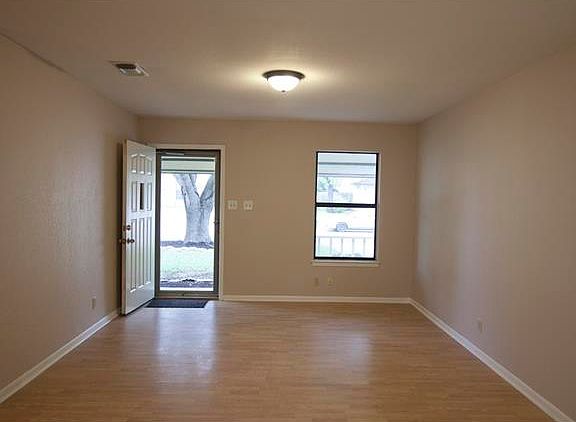 Fresh paint throughout interior and most of exterior, new light fixtures throughout most of house, large shade trees in both front and back (recently trimmed), garage partly converted for extra storage and a utility room (both garage doors open), pest control services house regularly, termite inspection last completed in 2014 (no termites), washer/dryer can convey, and no appliances in kitchen (dishwasher does not work). The size & cleanliness of this home allows for an easy remodel if wanted. Very cute!