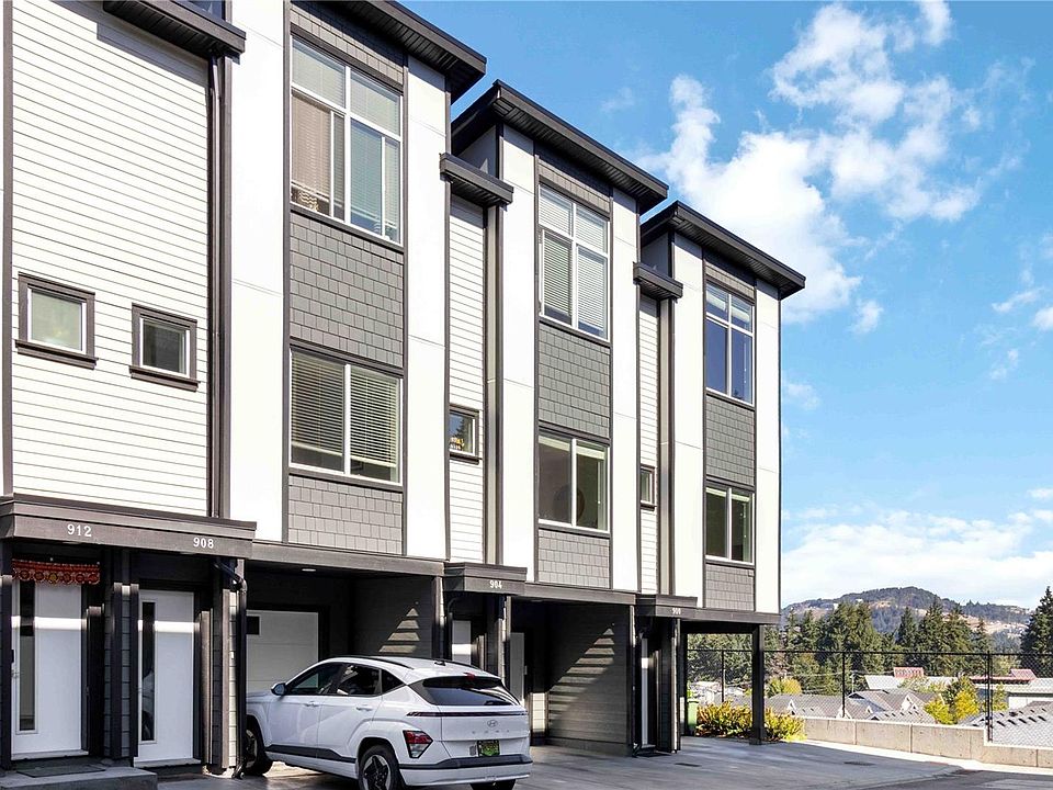 Welcome to Turnstone Ridge in Happy Valley! Built in 2021, this thoughtfully designed townhome offers 1,377 sq.ft. of stylish and functional living space, featuring 3 bedrooms, 2.5 bathrooms, a heat pump with A/C, and an on-demand hot water system. The main floor boasts an open-concept layout with high-quality finishes, including a bright and modern kitchen with crisp white cabinetry, quartz countertops, stainless steel appliances, and a gas range. A cozy gas fireplace anchors the living space, while large windows and a spacious sundeck provide natural light & beautiful mountain & valley views. Upstairs, you’ll find two generously sized bedrooms, a full bathroom, & a convenient laundry area. The lower level includes a single-car garage with EV charger, a third bedroom with its own 2-piece bath, & private patio. Located in a family-friendly neighbourhood, steps from Happy Valley Elementary, local parks, & the Galloping Goose Trail, with all the amenities of Langford just minutes away.