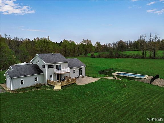 The Pinnacle of Country Living on 22 acres! The house design & positioning on the land is flawlessly executed with an abundance of unexpected amenities. The land was sought for its beauty, trees, & creek. Blanketed by the privacy of nature, visible to no neighbors, with walkable creek with 7 small waterfalls. In 2016, a jetted, SELF-CLEANING, salt water, heated, in ground pool was installed. Stamped concrete patio w/ built in firepit & covered deck overlook the pasture w/ solar powered electric fencing. The proximity from house to pasture is a clever connection to enjoy watching your animals. The barn/outbuilding has a concrete floor & owner has used for both car storage & animals featuring an adjustable pen system. Attached garage leads into country sized mud/laundry room which is also accessible from the deck. Directly off mud/laundry room is a full bath w/sizeable walk in shower, great for humans & dogs. Guests enter through front door & have a breathtaking view of the great room. Entire home has hot water/radiant, heated floors. 3/4 inch solid maple hardwood floors. Windows featuring transom windows, perfectly frame your picturesque lot. Wood burning fireplace. Kitchen is adorned w/ solid cherry wood, "in-set" cabinets! Built in wall oven w/ separate Electrolux stovetop has ventilation range that rises & recedes from countertop. Prep sink next to stove plus large, deep primary sink. Pantry that leaves you yearning for no additional space! 2 bedrooms and a full bath on the 1st floor, allowing this home to live like a ranch in older years. 1 of the first floor bedrooms has sliding glass door to the deck. The second floor consists of a loft with wet bar, plus the owner's bedroom with en-suite bath, walk in closet, & balcony. The luxurious bathroom has a heated spa tub, double vanity, & walk in shower w/rainfall showerhead & body sprayers. Walk in closet w/custom cabinetry. Showings begin immediately. Open House Sun May 18th 11-1. No bids reviewed until Tues May 20th @ 12noon. Adjacent property, 932 Werner Rd is also for sale, which is a small ranch home on 10 additional acres being offered at $179,900. Also listed as MLS#: B1605986.
