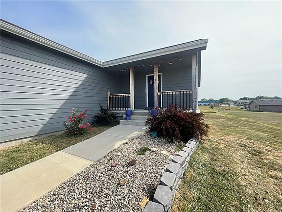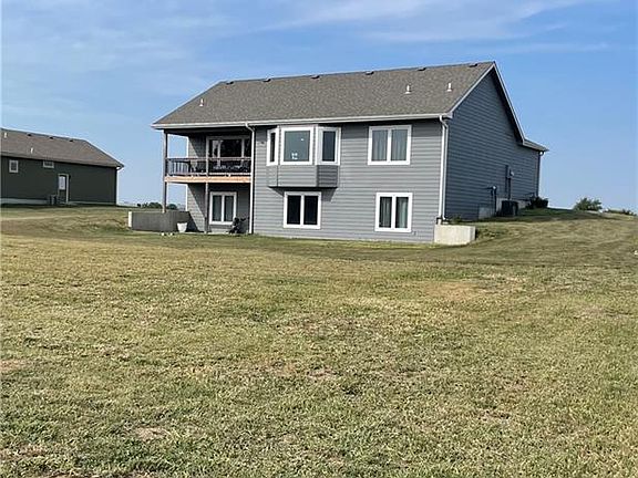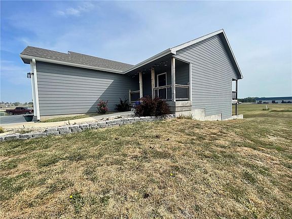 This home constructed in 2021 has an amazing view. It was well designed with an open concept kitchen, dining and living room. The master bedroom sets just off the main living area with a graciously sized bathroom and walk in closet. The laundry closet sets just near the master bedroom as well as a 1/2 bathroom just inside the garage access door. What a kitchen it was designed for function and has a large walk-in pantry! The basement provides you with a large family room and 2 more bedrooms, along with a 2nd full bathroom. A large utility room for storage and even enough space for an at home office. The attention to detail with all the light fixtures and extra architectural bonuses will impress you. With efficiency in mind, the home was insulted with closed cell spray foam, to help keep the utility costs down. The view from the front porch is one of open fields and an opportunity to see some amazing Kansas sunsets.
