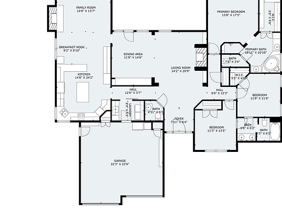 The home offers two generously sized bedrooms with a Jack-and-Jill bath, and a luxurious primary suite complete with a spa-like bathroom featuring a garden tub, separate shower, separate sinks, and a large walk-in closet.