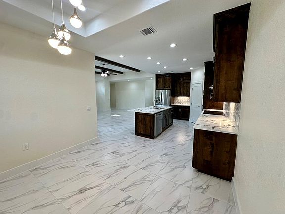 Built in 2025, this beautifully finished single-story home offers modern comforts on a generous, tree-dotted lot in Cedar Park. Inside, an open layout connects the living, dining, and kitchen spaces beneath high ceilings, with a large island, ample cabinetry, and stainless appliances anchoring the chef's kitchen. The primary suite features a spa-like bath with a soaking tub, walk-in shower, and dual vanities, plus a spacious walk-in closet. Two additional bedrooms and a dedicated office/flex space share a second full bath. Flooring is a combination of porcelain tile and wood, and every room has ceiling fans for comfort. Step outside to enjoy both covered front and rear porches overlooking mature oaks, along with a two-car garage and a long driveway for extra parking. Conveniently located near parks, shopping, and major roadways, and zoned to Leander ISD schools. Tenant pays utilities; pets allowed with deposit. The home is ready for immediate move-in