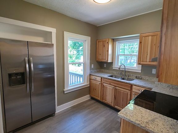 This 3-bed 1-bath single-family home is ready and waiting! This home features beautiful hardwood floors throughout, a living room with a decorative fireplace and large windows for lots of natural light, a formal dining room, and a kitchen with lots of cabinet space. Upstairs are 3 bedrooms with hardwood floors, the bathroom, built-in linen cabinets, drawers, and a hallway closet for tons of storage! The basement offers laundry hookups. In the nice weather, you can relax on the large front porch, or the back porch. Good size yard, and detached 2-car garage. Tenant must provide appliances. Tenant pays all utilities.