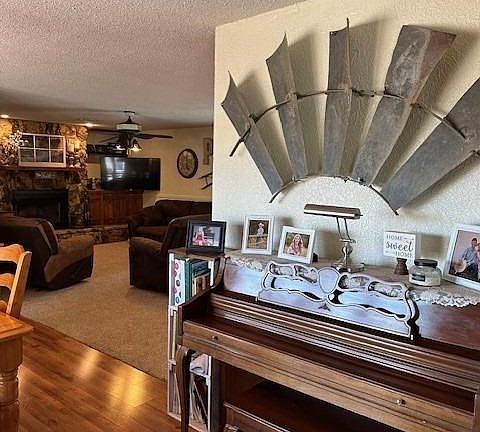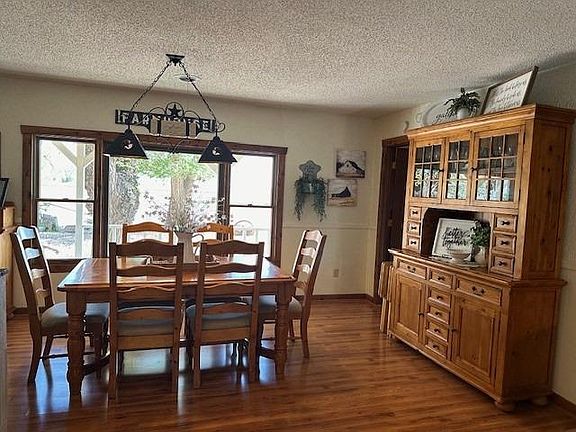 Simple country living! 3 bedroom home on 20 acres. Gorgeous interior, large kitchen with 2 eat at bars, pantry, appliances included. Living room with fireplace, den that could be 4th bedroom. 70 x 40 round top, 24 x 42 shed, corral. 60 dryland acres also for sale $75,000. (taxes on land $75.)