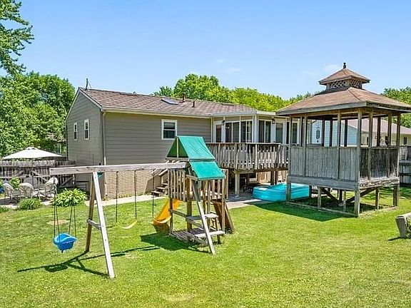 Fully fenced yard with a small deck and gazebo right off the 3-seasons room ideal for relaxing or hosting