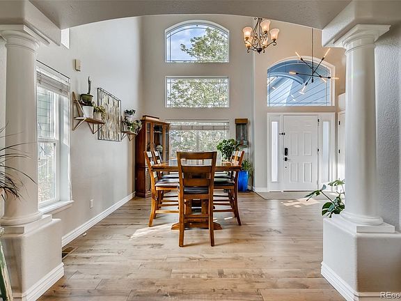 Situated on a beautifully landscaped lot with mature trees, this popular floor plan will amaze you with the amount of space. This home has an abundance of natural light, has 4 bedrooms, 4 bathrooms plus a loft. Boasting formal living and dining rooms in addition to plenty of casual space, there's room to entertain or have some space. This floor plan is loaded with nooks, niches, angles and a Juliet balcony off the Master! The maple plank flooring adds warmth, practicality, and flows throughout the main level, high traffic areas and upper level of the home. Large Master bedroom has a walk in closet and 5 piece ensuite bath. The beautiful Kitchen has granite counter tops, adjoins the family room which has a gas fire place, built in shelving and vaulted ceiling. Walk out basement is finished, carpeted and provides a 4th bedroom, spacious 2nd entertainment area and plenty of storage. As you enter the back yard you'll love the covered flag stone patio and huge wrap-around yard w/mature apple and pear trees. Only minutes to C470 for easy access to metro area, mountains. Easy access to shopping, entertainment, Highlands Ranch Rec Centers, trails, parks and golf courses.