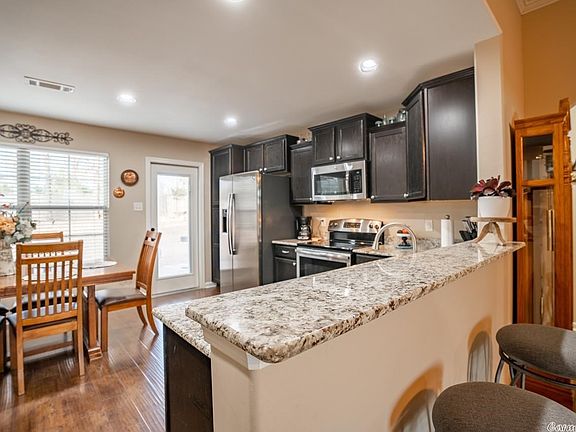 Stunning move-in ready home in Bryant School District. One owner home has been well taken care of! New roof (warranty transferable), new carpet and gutters in 2021. Backyard is fully fenced, complete with deck & pergola and wooded space behind property. Beautiful landscaping and treated lawn. Home has open floor plan, granite countertops throughout, and spacious closets. This is a must see! AGENTS SEE REMARKS