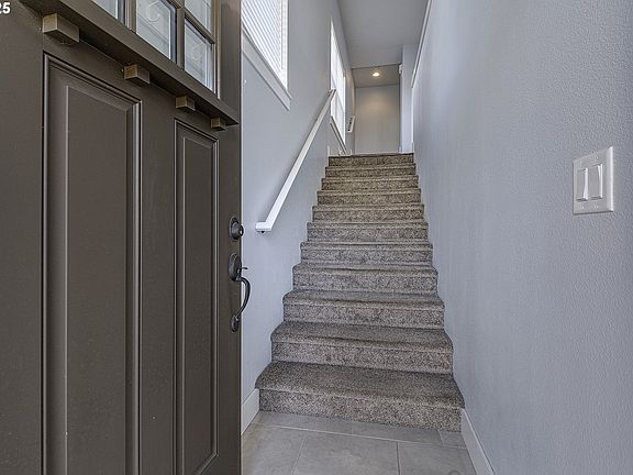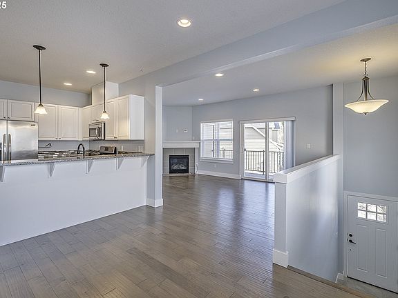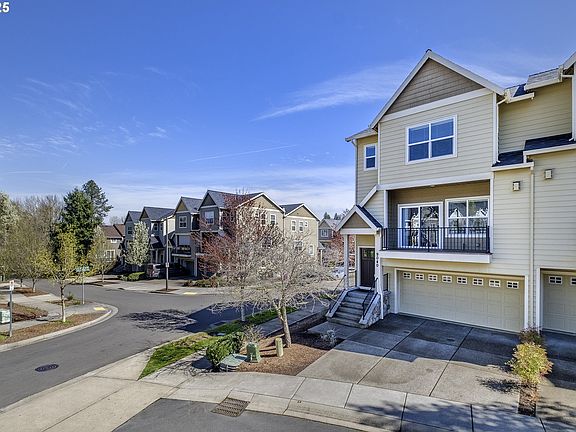 Spacious end-unit townhome is move-in ready! The bright & open layout is ideal for everyday living & entertaining. Large windows & high ceilings provide lots of natural light & the attached oversize 2-car garage has lots of storage & epoxy floor! Living room features engineered hardwood floors, corner gas fireplace & slider to deck. Kitchen w/granite countertops, elevated eating bar, pantry & stainless appliances including, gas range & refrigerator. Primary suite has walk-in closet, large vanity w/granite countertop & dual sinks, shower & tiled floor. Second bedroom has 2 closets. Upstairs laundry includes washer & dryer. Garage w/2 storage closets, epoxy floor & attached storage shelves. Water heater (2023), gas furnace & A/C. Conveniently located near schools, parks, trails, shopping centers, dining, Beaverton Transit Center, Max Light Rail & bus services.