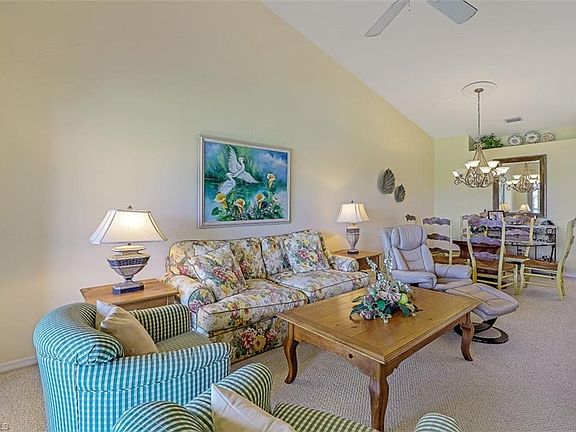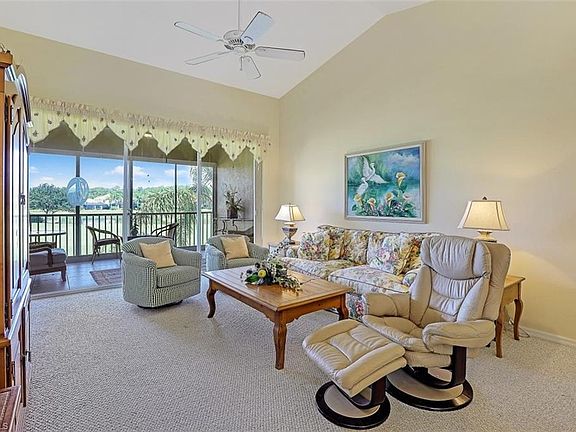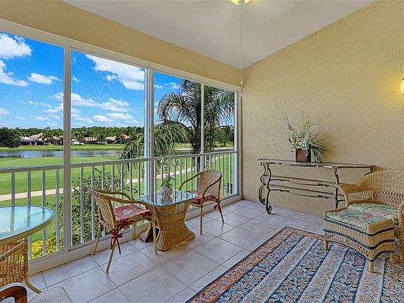 Partially furnished 2BD/2BA HEATHER floor plan condo with breathtaking views Spring Run Golf Course 18th hole. Located in the subdivision of Streamside buzzing with social events and friendly neighbors. This condo features a great room with open kitchen to living room views. Additionally, a spacious screened lanai facing the 18th hole so you can wave to friends as they finish a great game and head to club to celebrate. Spring Run is a bundled golf community offering a wide variety of amenities & endless social activities. The newly remodeled clubhouse and 18 hole golf course feature fine dining, grill & bar, pro shop, community pool & spa, tennis courts, fitness center, bocce ball, library and more. Membership to the Commons Club is available featuring a private beach club on Little Hickory Island. Spring Run is centrally located in The Brooks within walking distance to Coconut Point Mall for Shopping, Restaurants & Entertainment. Just 20 minutes to the beach and SWFL International Airport.