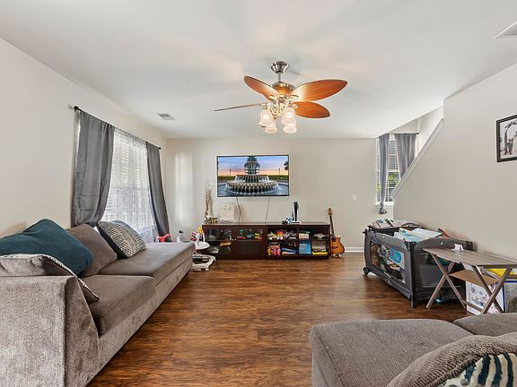 This 4-bedroom, 2.5-bath home in Wescott Plantation offers 1,674 sq. ft. of functional living space. The first-floor primary suite provides convenience and privacy, while the open living and dining areas flow naturally to a screened-in back porch. Upstairs, three additional bedrooms offer flexibility for family, guests, or work-from-home needs. A one-car attached garage adds everyday practicality. The fenced backyard with a tree-lined backdrop creates a private outdoor setting. Located in a desirable community with neighborhood amenities and easy access to shops, dining, and schools.
