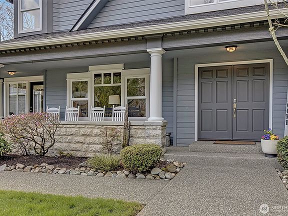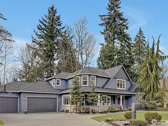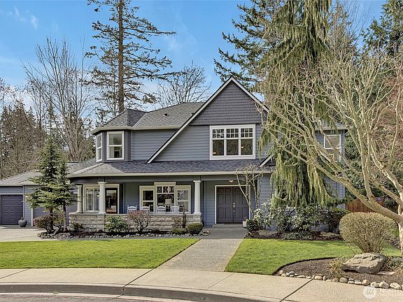 Beautiful craftsman in desirable Horseshoe Ridge neighborhood. 3,425 sq ft, 4 bdrm, 2.5 bath home surrounded by gorgeous landscaping with large lot backing up to protected green belt and located at the end of a cul-de-sac. Large, covered porch and spacious back patio equipped with a firepit. Double sided gas fireplace, huge master w/large five-piece en suite, sizable laundry room, three-car garage, and storage galore! Meticulously cared for with many updates including a 30-year roof (2023), furnace (2024), water heater w/tank booster, EV charger, renovated kitchen, bathrooms, primary suite, interior & exterior paint, landscaping & much more. Desirable location! Close to ferry, I-5, I-405, shopping, restaurants, parks & community trails.