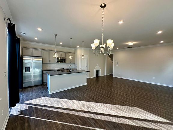 The home features a stunning open kitchen with a large center island, quartz countertops, stainless steel appliances, and soft grey cabinetryideal for both everyday living and entertaining. As you enter through the garage, you'll appreciate the thoughtfully placed micron to help keep things organized.