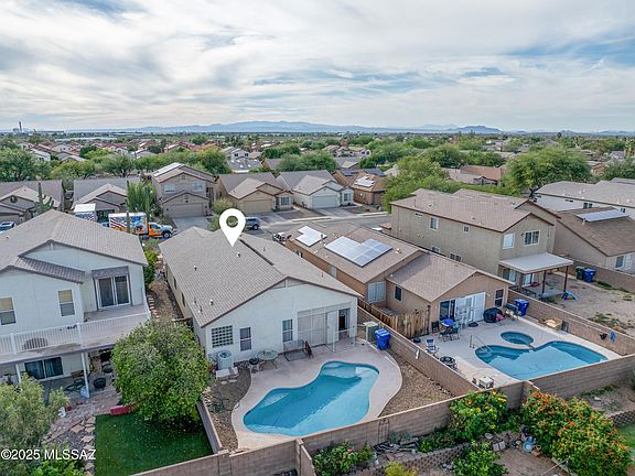 Everything you're looking for in Tucson living! This charming 3-bedroom, 2-bath home checks all the boxes, including a refreshing swimming pool! Enjoy tile flooring throughout the main living areas and a bright kitchen featuring light wood cabinetry, stainless steel appliances, and a convenient pass-through window to the dining space. The primary suite offers a remodeled tub/shower area with travertine tile surround and a nice soaking tub plus a spacious walk-in closet. Important updates have already been taken care of -- roof replaced in 2014, poly pipes replaced with PEX, plus a newer AC unit and garage door with newer opener. An enclosed patio adds flexible space for relaxing or pets, and both front and backyards are designed for easy maintenance. Best of all, you'll love cooling off in your own private pool the perfect retreat for Arizona summers!
