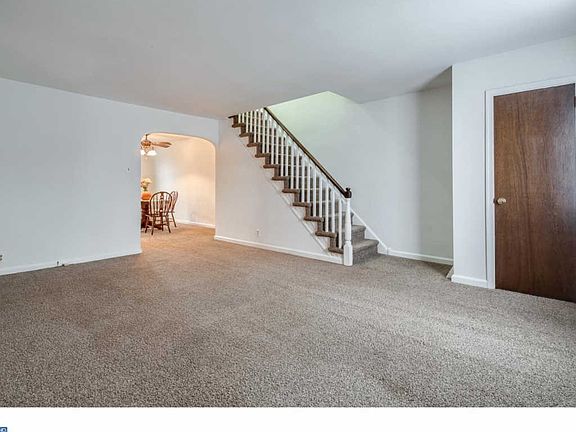 Move-in ready brick row home in very desirable Crispin Gardens! Beautiful bow window and poured concrete patio add to the curb appeal. This home has been freshly painted and the carpet has been replaced in the living and dining rooms. Finished basement has Berber carpeting, wood paneling and features five built-in seat benches that open for additional storage. There is also a custom built in closet with shelving. All three upstairs bedrooms are carpeted, have ceiling fans and good sized closets. The garage has just been freshly painted. Driveway parking. Showings begin on 10/18.