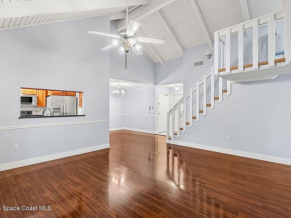 This rare end unit offers exceptional privacy and a versatile layout, complete with a cozy carpeted loft that can serve as a home office, guest lounge, or creative lifestyle space. Rich hardwood floors, a covered lanai and soaring vaulted ceilings create an open, inviting atmosphere, while the convenience of an in-unit washer & dryer adds everyday ease. Just minutes from Melbourne Square Mall and quick access to I-95, the location balances peaceful living with effortless connectivity. Within Greenwood's gated community, residents enjoy resort-style amenities including a sparkling pool, hot tub, sauna, tennis & racquetball courts, shuffleboard, fitness center, and a vibrant clubhouse. Association fees cover essentials like cable, internet, lawn care, pest control, insurance, and even roof replacement, ensuring worry-free ownership.