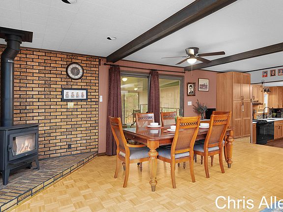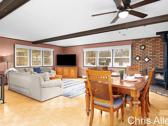 Tucked away on a quiet private road (Oakwood Trail), this inviting four-bedroom home sits on 3+ peaceful acres and becomes a private oasis when the trees are in bloom- you won't see a neighbor in sight! The impressive 45x50 barn with workshop offers endless space for storage, projects, or hobbies. Enjoy a three-seasons room, composite deck, lower patio with storage, and a circular pull-through driveway for easy access. Inside, the brand-new kitchen shines with solid hickory soft-close cabinets, quartz countertops, a composite sink, and all new appliances. Fresh paint, new flooring and carpet, and an updated bathroom create a warm, refreshed feel throughout. A cozy wood-burning stove anchors the main living room and Champion windows bring in abundant light. With major mechanicals, appliances, and the roof updated in the last five years-plus Rockford Schools-this home blends comfort, tranquility, and privacy. This is one you won't want to miss!