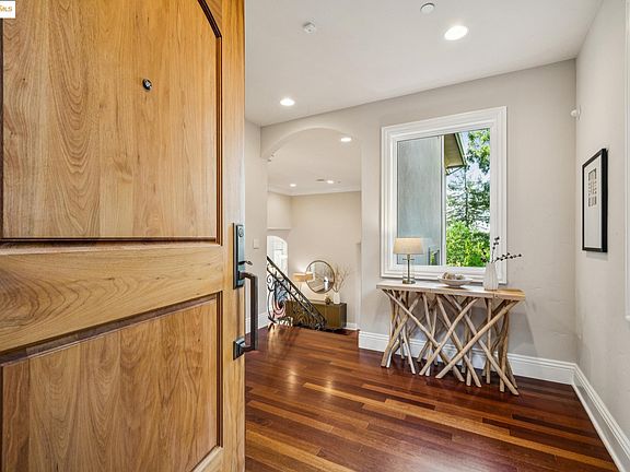 Welcome to 9047 Broadway Terrace, a high-tech residence where modern design and comfortable living converge. Soaring ceilings, gracious proportions, and views of the Bay create a peaceful retreat with the plus of a home elevator. This home boasts 6 generous bedrooms and 4.5 baths, including a primary suite with walk-in closet, expansive primary bath with jetted-tub and two-sided gas fireplace, and an elegant bedroom with balcony. The gourmet kitchen features soapstone countertops, two sinks, high-end appliances, and a large island that is perfect for casual meals or chic gatherings. The kitchen opens to a view deck, perfect for al fresco dining or taking in the Bay view. A large living room with a fireplace and picture windows is the ideal space for relaxation or entertaining, while a separate family room offers flexibility for movie watching, sleepovers, or game nights. Need a separate space to work? A private office is tucked away for concentration & creativity. The outdoor areas are equally inviting, featuring view decks and a lush lawn. Experience elevated living with thoughtful amenities: AC, 1 gig fiber internet, intercom, solar w/backup batteries, networking and security systems, and smart electrical panels. Close to Montclair Village. Make this exceptional property yours!