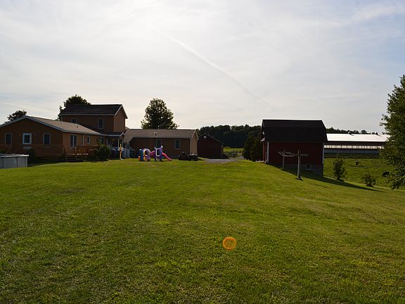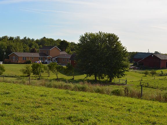The house, built in 1993, is 2 stories and 4068 sq ft with 8 bedrooms (5 on the first floor), 3 1/2 baths, laundry, office, kitchen, 26 X 26 ft family room with wet bar & crown molding, piano room, living room, 2 dining rooms, hot water base board heat with oil boiler, and decks on both ends of the house. Property includes 30 ft round above ground swimming pool, garage, 40 X 20 ft chicken/small animal building, bunk house, original barns with new addition, and new 78 X 200 ft compost barn built in 2011. The Land consists of approximately 100 acres with the house, barns and pastures and 35 acres of woods and small pond. The pastures are separated into paddocks with high tensile fence and water in each paddock. The property also has apple, pear, and peach trees, berry and strawberry patches, as well as a large garden. It would be great for a beef opperation or easily transitioned into a grazing dairy. Main house could easily be made into a multi-family home. $699,000 This property is also attached to a second property with a second house. We are offering them for sale separately or together. The second house is on an additional 45 acres. It was built in 2004, is 2 stories and 2186 sq ft. It features a wrap around porch with beautiful views, two sets of double french doors, hardwood floors and crown molding on both levels, 4 bedrooms, 2 1/2 baths, laundry, kitchen, dining room, living room, back porch, and a 2 car garage. The master bedroom has a full bath and walk-in closet. This house also has an additional 821 sq ft of liveable space in the finished basement as well as an utility room. Hot water base board heat with propane boiler. Property includes an outdoor storage building, large garden, several cherry trees, and a variety of berry bushes. $345,000 The farms together make for a beautiful and private setting with road frontage on both sides. In addition, plenty of deer and turkey right in your back yard make for excellent hunting! Purchase these properties separately (Main house + 136 acres/ 2nd house + 45 acres) or together (2 houses + 181 acres), you won't be disappointed!