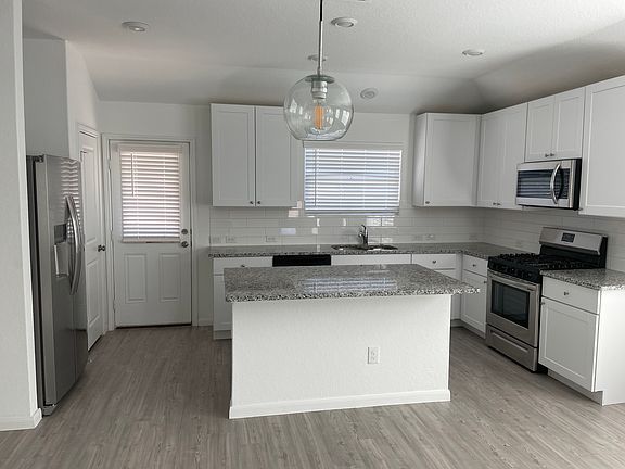 Kitchen includes oversized island and granite countertops, refrigerator with icemaker, dishwasher, disposal, microwave, gas range and oven. Utility room with gas or electric dryer hook ups. Includes access to resort style pool, lap pool, 24-7 fitness center, walking trail, and club house! Easy access to San Antonio, New Braunfels, Seguin, and San Marcos.
