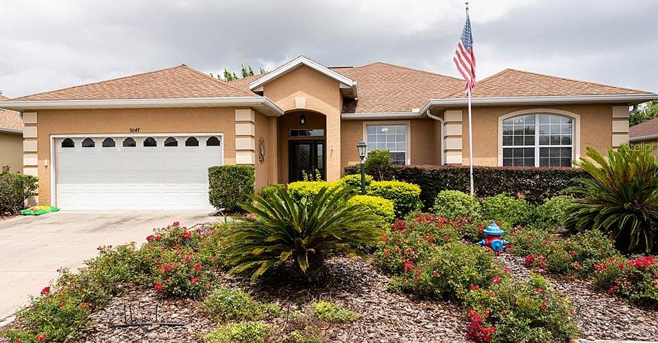 MOTIVATED SELLER! This lovely Essex model located in Avalon is located on the golf course! This home has 3 bedrooms, 2 bathrooms, and 2 car garage. The tiled entryway leads into the open living room/dining room with wood floors. Double doors lead into the 3rd bedroom with carpet, ceiling fan, closet, and large window to bring in the sunshine! Follow the hallway to the 2nd bedroom and bathroom. The bathroom has tile floors, a tub, and wood vanity. The living room features a large sliding glass window that opens into the enclosed Florida room. The carpeted master bedroom has a ceiling fan, large picture window overlooking the golf course, and 2 closets (1 walk-in closet). The master bathroom has a glass shower, soaking tub, and linen closet! The carpet has recently been replaced in all bedrooms. New blinds in the 2nd and 3rd bedroom. The updated kitchen has white cabinets, stainless steel range, and pantry. Enjoy your breakfast while enjoying the golf course views from the kitchen's sitting area! Laundry room leads into the garage. The HVAC system has been updated in 6/2020 and the garage floor, was just painted 9/2020! The enclosed Florida room has screened windows all the way around. The mulched backyard has trees and overlooks the golf course. Front landscaping has been updated. The home is located within walking distance of The Arbors with fitness center, pool, and conference center. Located in Ocala's premier, gated, active 55+ community, loaded with amenities, including golf cart access to two shopping centers.