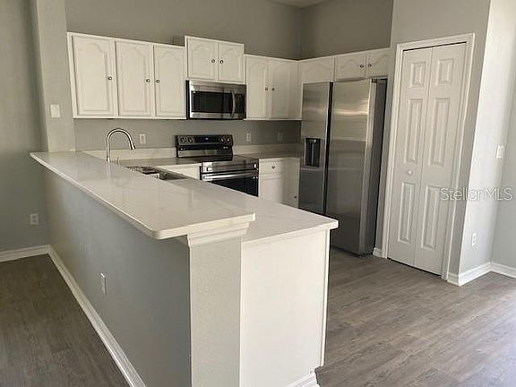 Welcome to this beautifully renovated 2-bedroom, 2-bathroom home nestled in the scenic Mount Dora Country Club subdivision. Bathed in natural light, this charming residence offers a serene retreat for modern living. Step inside to discover a thoughtfully designed interior featuring quartz countertops, stainless steel appliances, and brand new laminate flooring throughout. The freshly painted walls create a bright and inviting atmosphere. The open floor plan seamlessly integrates the living, dining, and kitchen areas, perfect for both daily living and entertaining guests. The spacious master bedroom boasts an en-suite bathroom with modern fixtures and ample closet space. A second bedroom provides flexibility for guests or a home office. Convenience is key with a 2-car garage providing secure parking and additional storage space. The laundry room includes a washer and dryer for added convenience. Outside, enjoy the Florida sunshine on the patio or take a stroll through the well-maintained community to the community pool. Don't miss the opportunity to buy this beautifully renovated home. Schedule your showing today!