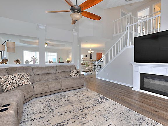 Welcome to this beautifully maintained 4-bedroom, 2.5-bathroom home that offers comfort, style, and functionality. Step inside to a large great room with stunning two-story ceilings that create an open, airy feel—perfect for entertaining or relaxing with family. There's no carpet on the main floor, providing a clean, modern look and easy maintenance. The spacious kitchen features ample countertop space, sleek stainless steel appliances, and plenty of room to prepare meals and gather with loved ones. Overlooking the great room, the staircase adds a dramatic architectural element while maintaining the open-concept flow. Upstairs, the generous master suite offers a private retreat with room to unwind, while additional bedrooms provide flexibility for family, guests, or a home office. You'll also enjoy excellent storage throughout the home. Step outside to your private, fenced backyard—complete with pavers, a cozy firepit, and a covered patio ideal for outdoor dining and gatherings. Located in cul de sac and conveniently close to schools, shopping, dining, and entertainment, this home offers the best of both comfort and convenience. Don't miss this incredible opportunity!