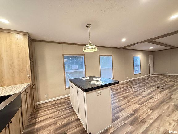 Take a look at this beautiful 3 bed 2 bath manufactured home on 5.75 acres located just down from interstate I-24 & I-57. This property has two driveways with a new convenient access. The home s move in ready and features new flooring throughout, spacious living room with fireplace, wonderful kitchen with island and pantry. Large master bedroom suite with walk-in shower and closet. Additional bedrooms are sizable plus additional full bath. Off the 2nd driveway is a foundation of a previous home site with 2 garage stalls that could be finished out. This property has lots of potential and the seller has financing available. Call today for more information